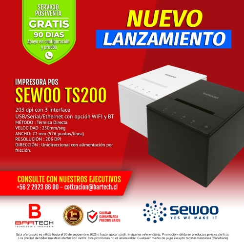 203 dpi, 3 interface USB/Serial/Ethernet con opción WIFI y BT